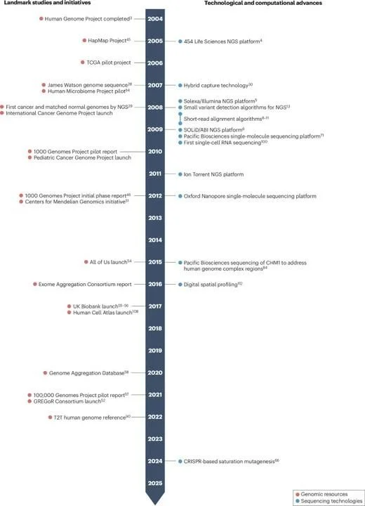 Nature Reviews Genetics: Extraordinary advances in genomic science have defined the twenty-first century, transforming our understanding of human biology in both health and disease. This timeline Perspective charts two decades of genomic innovation since the human genome reference sequence became available, highlighting the evolution of sequencing technologies and how they, combined with computational advances, paved the way for genomic medicine.